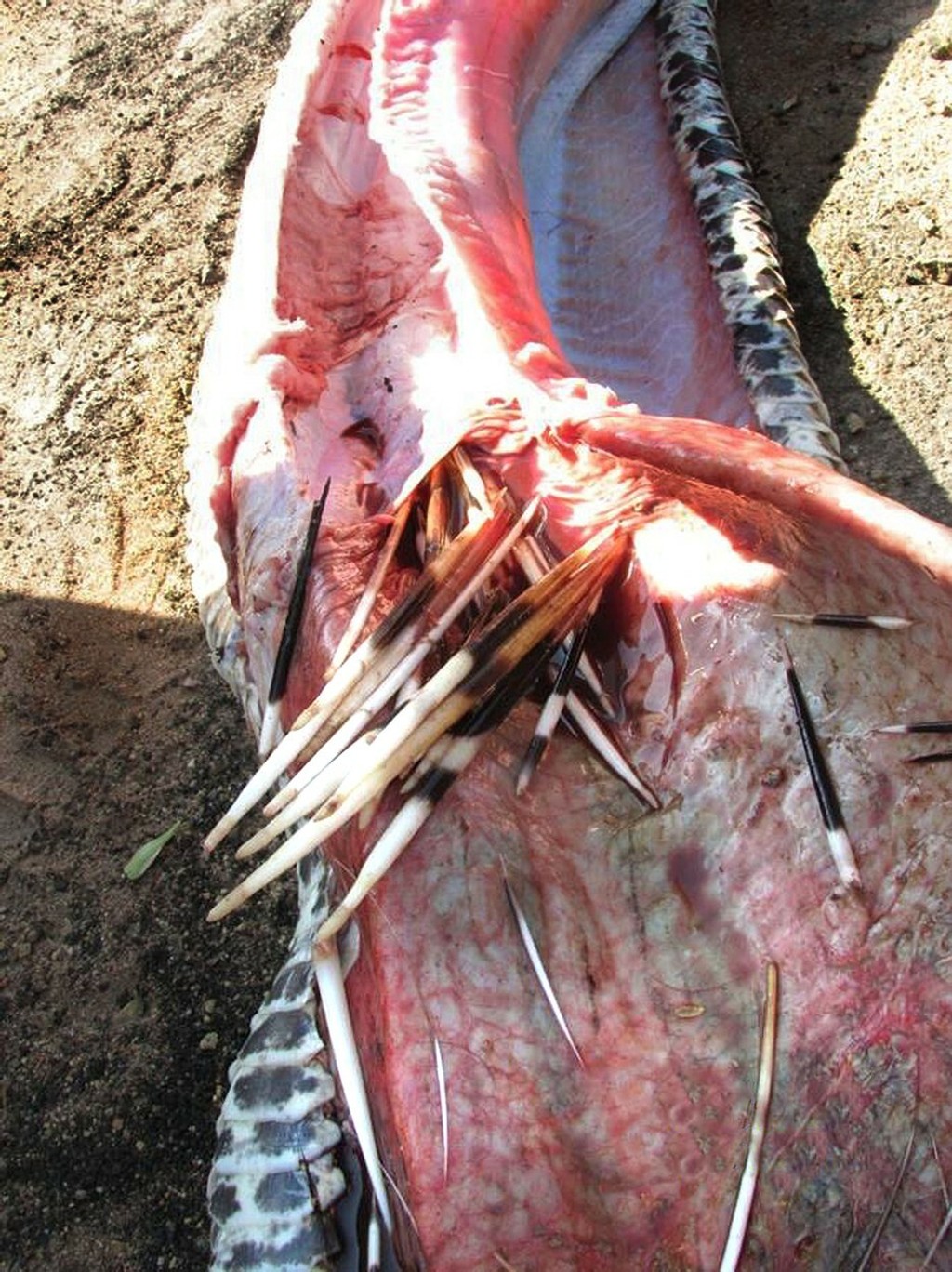 Mŕtveho pytóna našli pod skalami pri jazere Eland Game Reserve v Juhoafrickej republike. Po tom, čo ho rozrezali, objavili obrovského dikobraza. „Presné dôvody smrti hada nie sú zatiaľ známe. Predpokladáme však, že ho zabili ostré ostne dikobraza," informoval pre denník DailyMail hovorca rezervácie Jennifer Fuller.