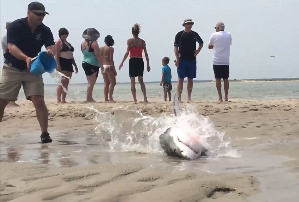 Odvážni návštevníci pláže predátora nenechali zomrieť. Kým vymysleli, ako ho dostanú naspäť do mora, vylievali na neho vedrá s vodou. Potom spolu s miestnymi policajtmi priviazali žraloka za plutvu a pomocou člnka ho odtiahli do mora. Na miesto boli privolaní aj biológovia, ktorí si žraloka začipovali a teraz ho môžu sledovať.