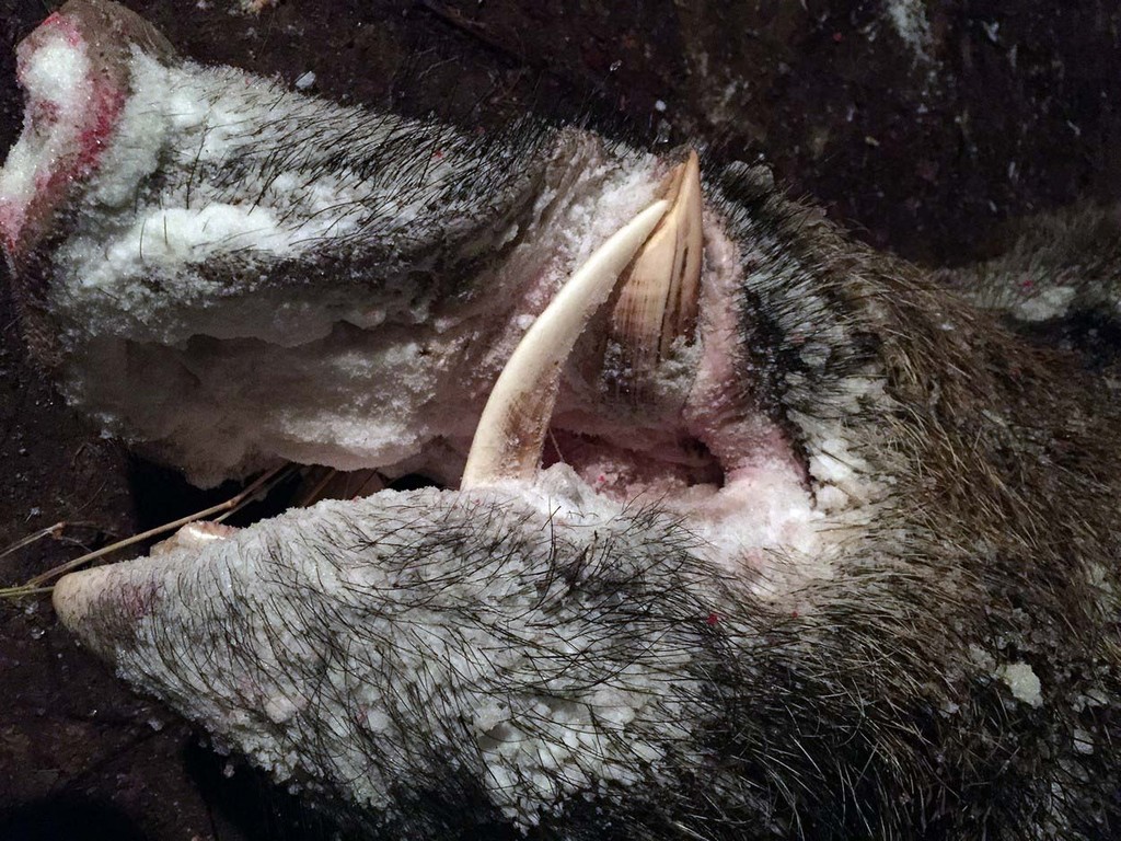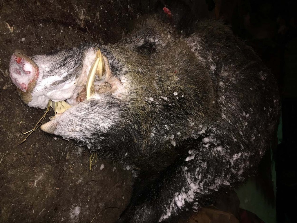 Spolu so svojim priateľom sa vydal po krvavých stopách. Po niekoľkých minútach prenasledovania opäť zazreli ťažko zranené zviera. Zasiahli ho druhou ranou. Ani tá však mega diviaka nezastavila.