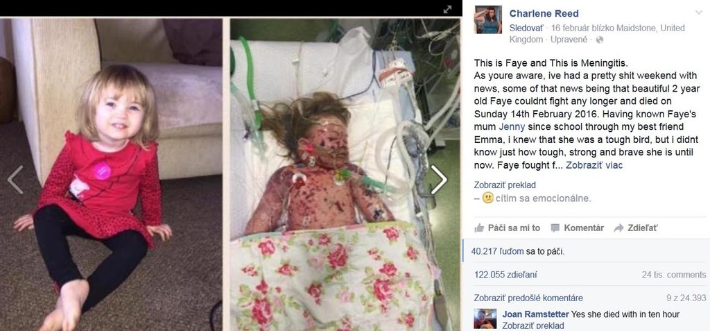 Najťažšie rozhodnutie pre rodičov v živote. Ako píše denník The Sun , Faye bojovala s chorobou jedenásť dní. Rodičia sa rozhodli pre druhú možnosť a ich dievčatko odišlo presne na Valentína. Zarážajúce je, že viaceré deti boli proti tejto chorobe očkované, Faye však zahrnutá do pravidelného očkovania nebola.