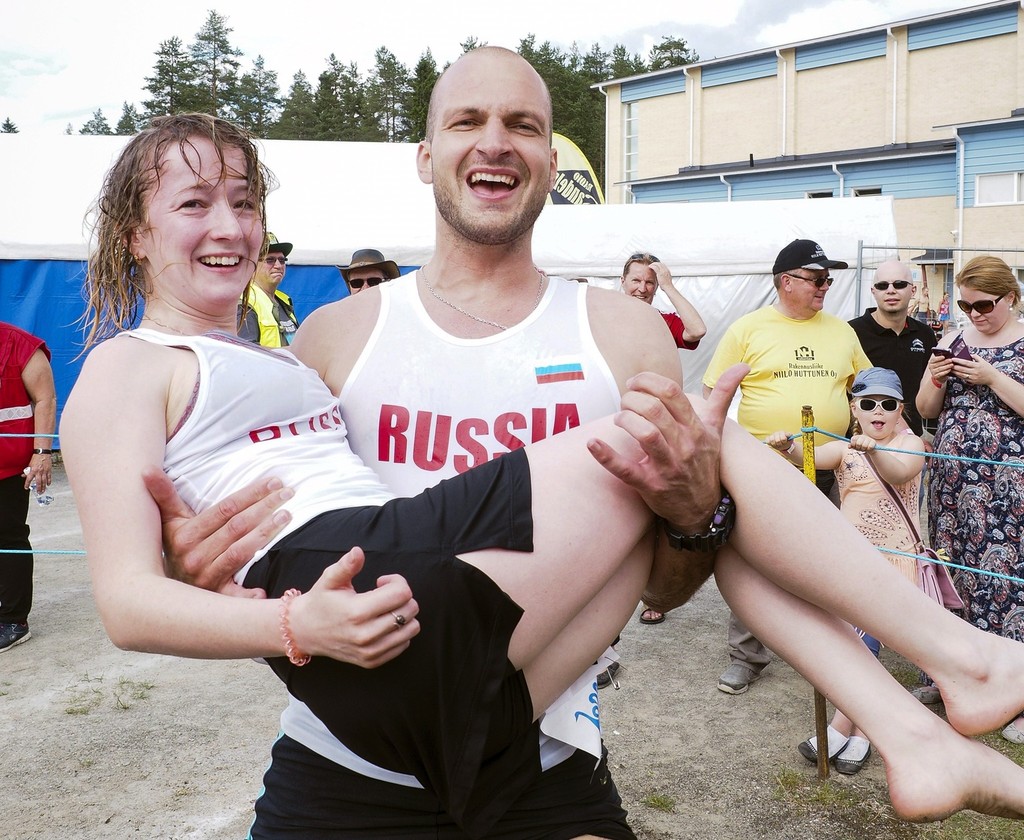 Kuriózne majstrovstvá sveta v nosení žien vyhral túto sobotu vo Fínsku pár z Ruska. Trať dlhú 253 metrov prebehol Dmitrij Sagal s partnerkou Anastasiou Loginovovou na pleciach za jednu minútu a dve sekundy.