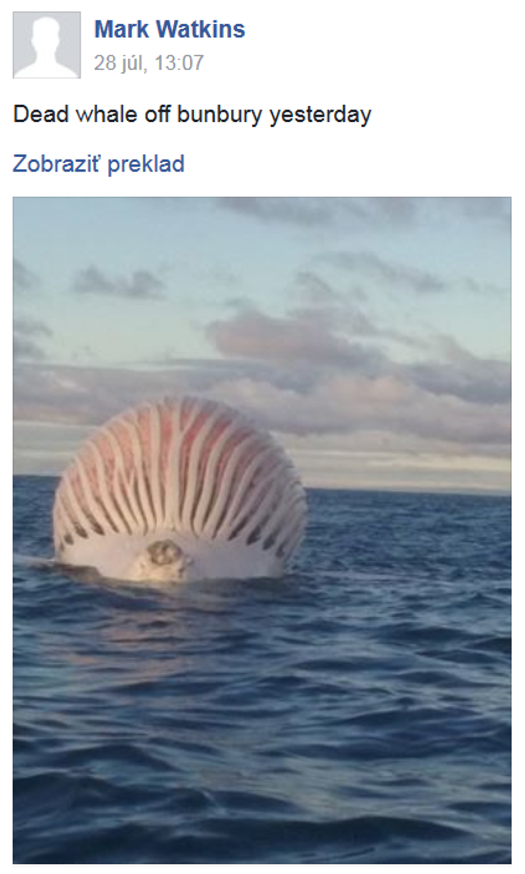 Najprv si mysleli, že vidia loď alebo teplovzdušný balón. Keď však priplávali bližšie, tak zostali poriadne prekvapení. Bola to totiž mŕtva veľryba, ktorá mala nafúknutý žalúdok do obrovských rozmerov.