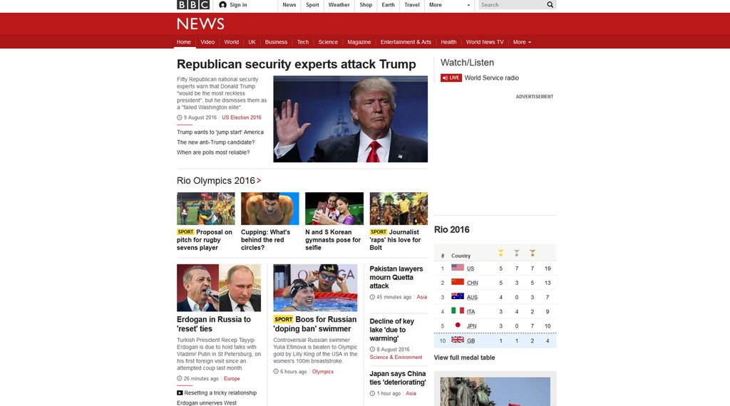 Rozhlasová a televízna spoločnosť plní funkciu verejnoprávneho vysielania vo Veľkej Británii. Založili ju v roku 1922 pod názvom British Broadcasting Company. Od roku 1927 nesie názov British Broadcasting Corporation. Bola prvou a najväčšou spravodajskou stanicou v Británii.