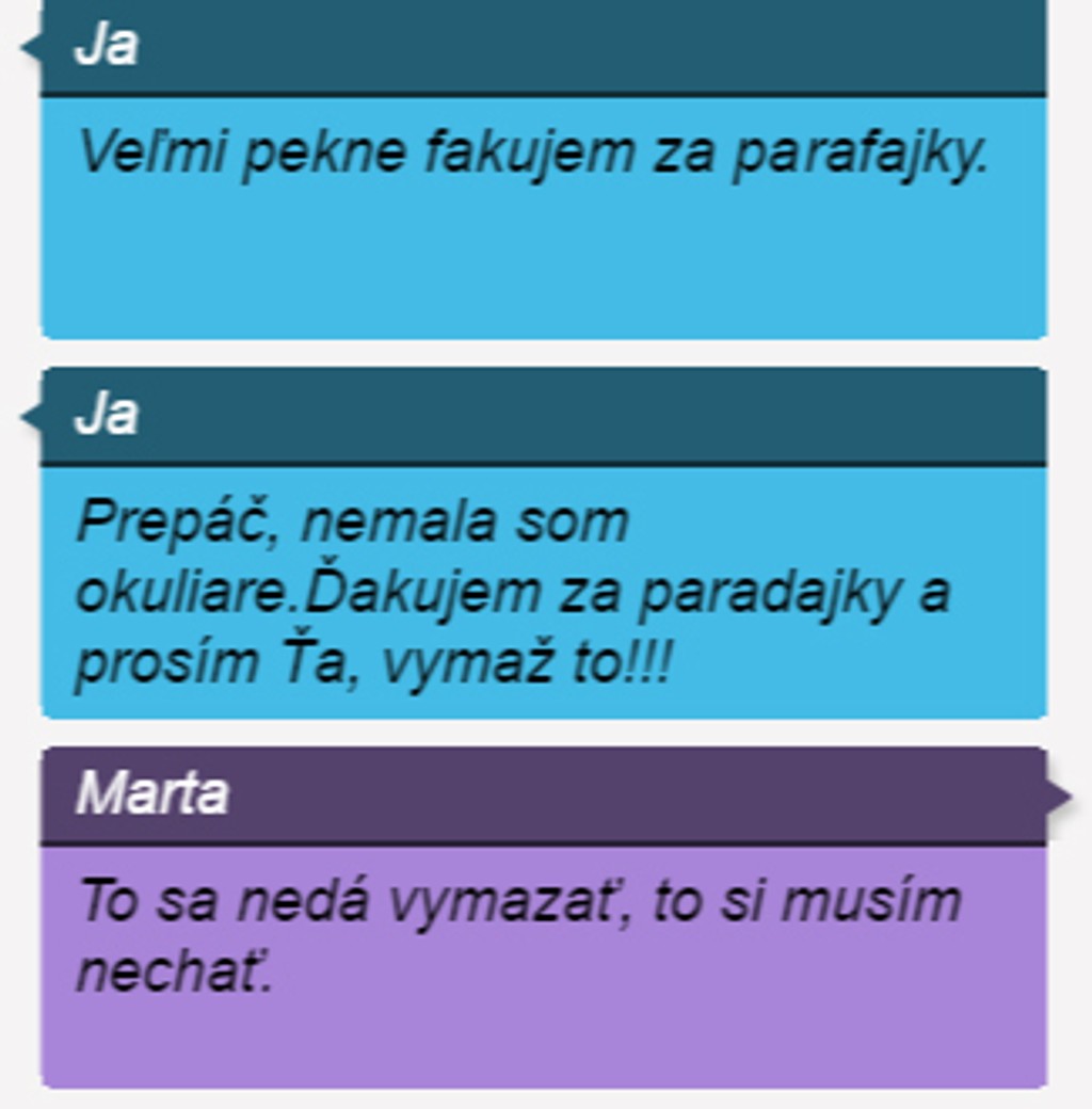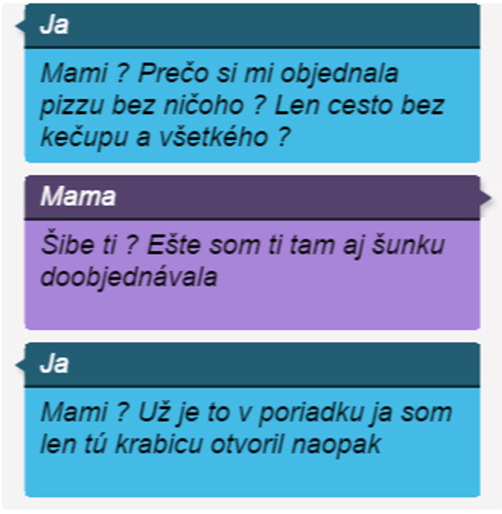 Dôkazom sú desiatky vtipných konverzácií, ktoré operátorovi zaslali zákazníci. Galériu toho naj z rodinných konverzácií môžete nájsť na stránke rodinnerozhovory.sk. My vám prinášame malú ochutnávku.