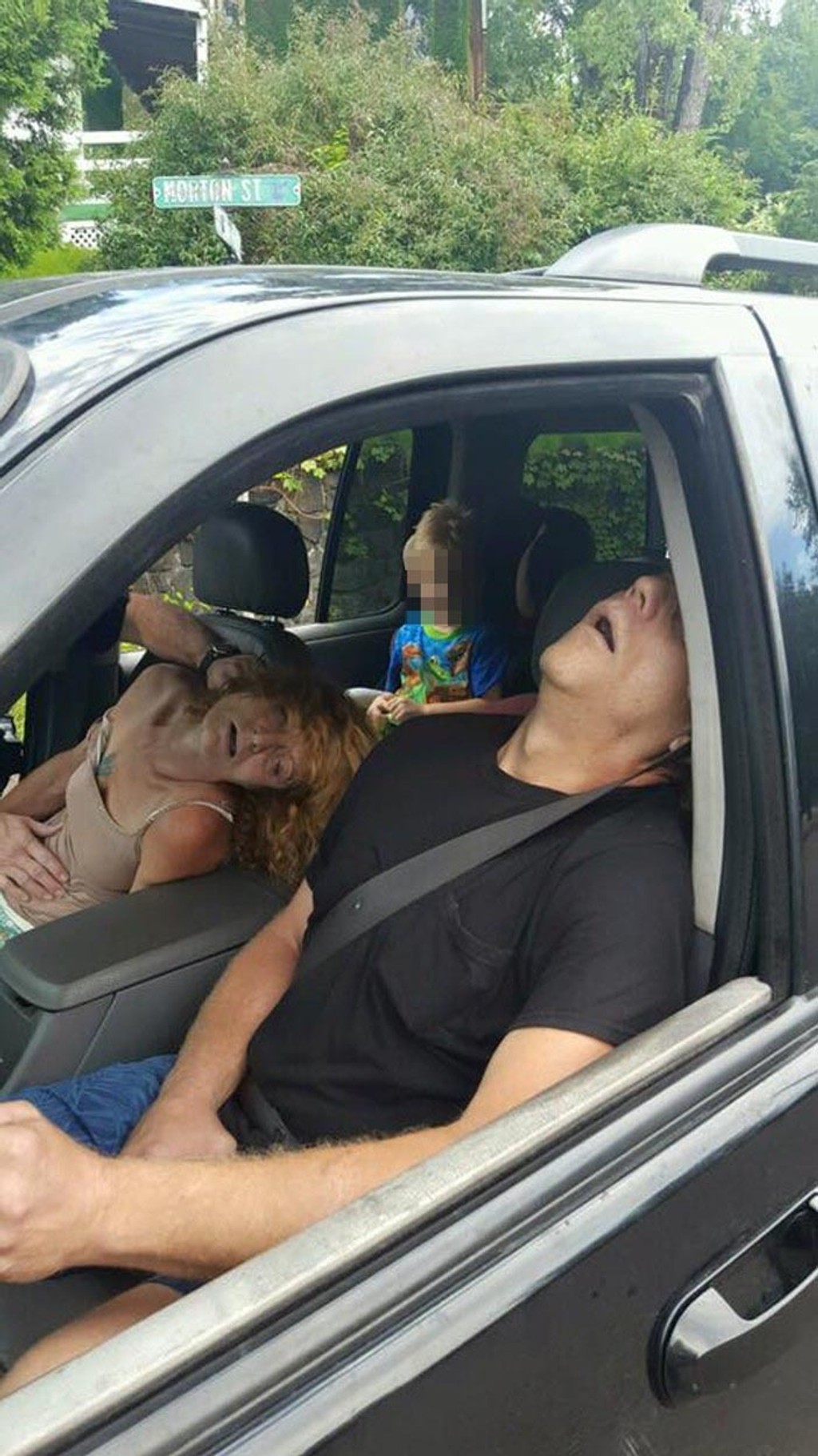 Policajti z amerického mesta East Liverpool v štáte Ohio sa rozhodli zdieľať na svojej FB stránke sfetovaný párik - muža so ženou - a malým batoľaťom na zadnom sedadle auta. Párik mal po dávke heroínu upadnúť do bezvedomia.