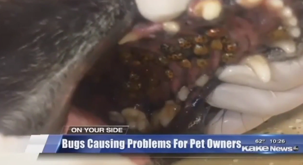 Majiteľka nechcela veriť vlastným očiam. Keď otvoril svojmu domácemu miláčikovi ústa, zbadal tam nečakaných návštevníkov. Baileymu sa na podnebie nalepili desiatky ázijských lienok. Podľa majiteľa z Kansasu jeho pes veľmi rád naháňa hmyz a to sa mu aj vypomstilo.