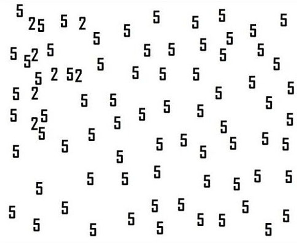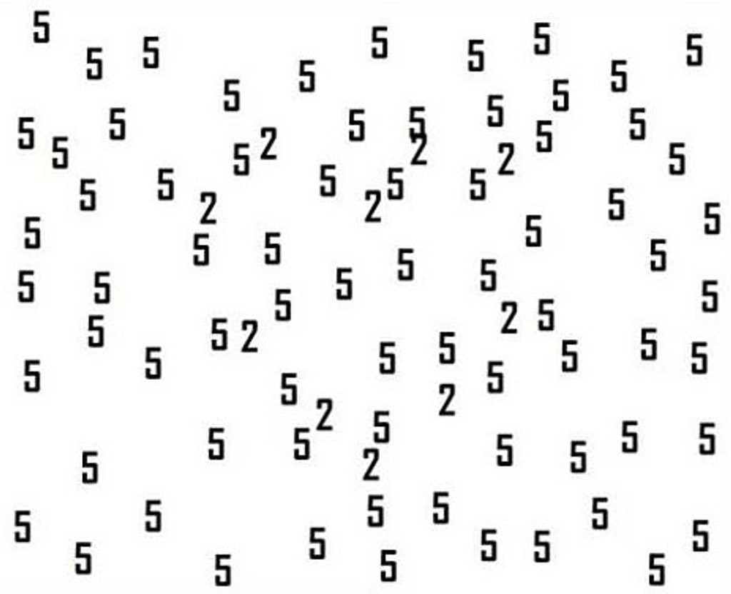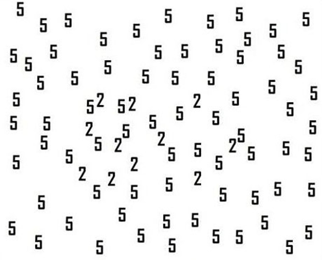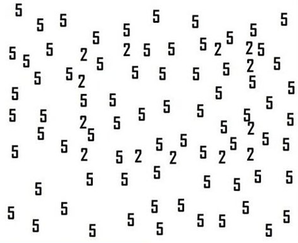K dispozícii je nová hra s číslami, ktorá sa začala šíriť internetom. Na prvý pohľad vyzerá jednoducho, je však zradná. Medzi množstvom číslic päť sa ukrývajú aj číslice dva. Práve na tie by ste sa mali zamerať, tie sú predmetom hádanky. Pri dlhšom pohľade na ne sa vám čísla začnú miešať dohromady. S najnovšou ponukou kvízu prišiel opäť Playbuzz. Ten tvrdí, že len jedna osoba z 2-tisíc, je schopná úspešne prejsť hádankou. Tak sa skúste otestovať aj vy.