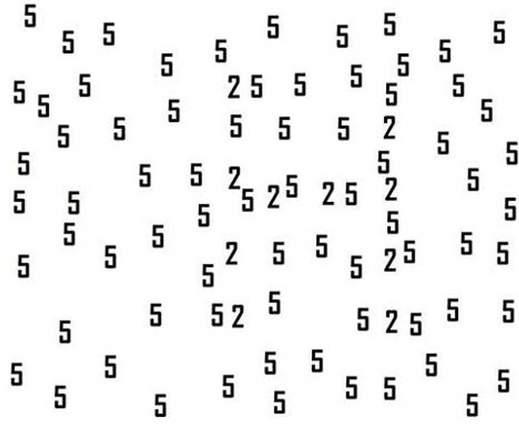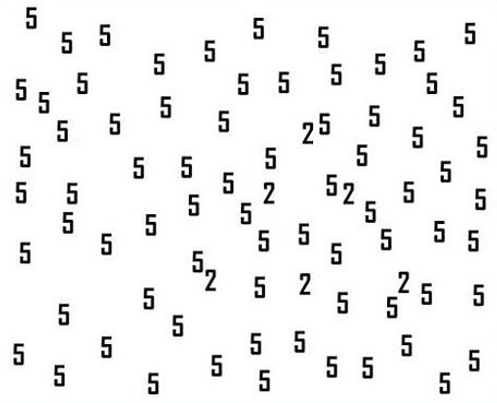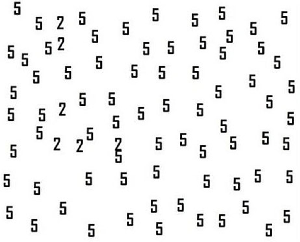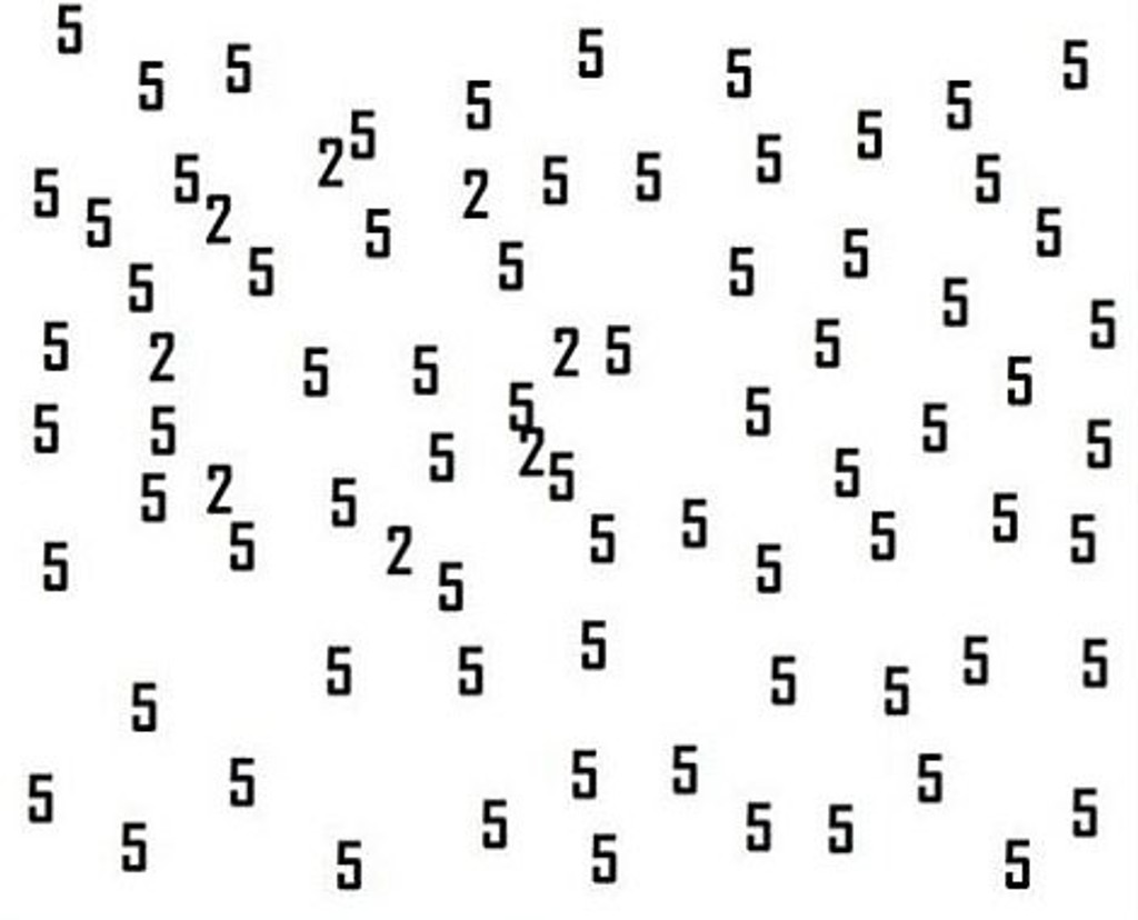 K dispozícii je nová hra s číslami, ktorá sa začala šíriť internetom. Na prvý pohľad vyzerá jednoducho, je však zradná. Medzi množstvom číslic päť sa ukrývajú aj číslice dva. Práve na tie by ste sa mali zamerať, tie sú predmetom hádanky. Pri dlhšom pohľade na ne sa vám čísla začnú miešať dohromady. S najnovšou ponukou kvízu prišiel opäť Playbuzz. Ten tvrdí, že len jedna osoba z 2-tisíc, je schopná úspešne prejsť hádankou. Tak sa skúste otestovať aj vy.