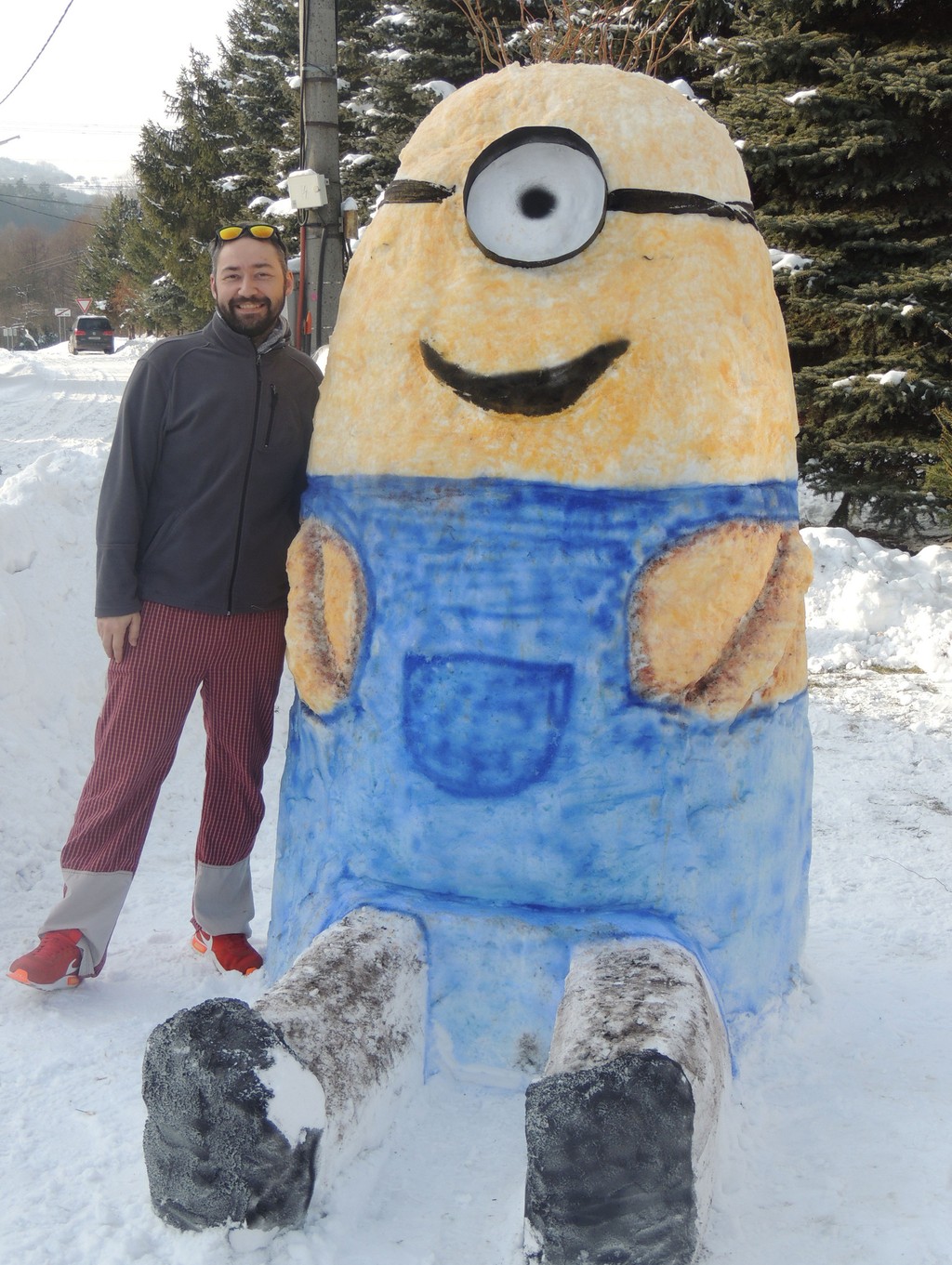 Medzi rodinnými domami v Žarnovickej Hute (mestská časť Žarnovice) púta pozornosť malých aj veľkých nadrozmerná snehová postava mimoňa. Približne 2,5-metrovú sochu tejto obľúbenej detskej postavičky urobili súrodenci Petronella a Martin za pomoci tretieho pomocníka Tomáša v priebehu niekoľkých hodín.