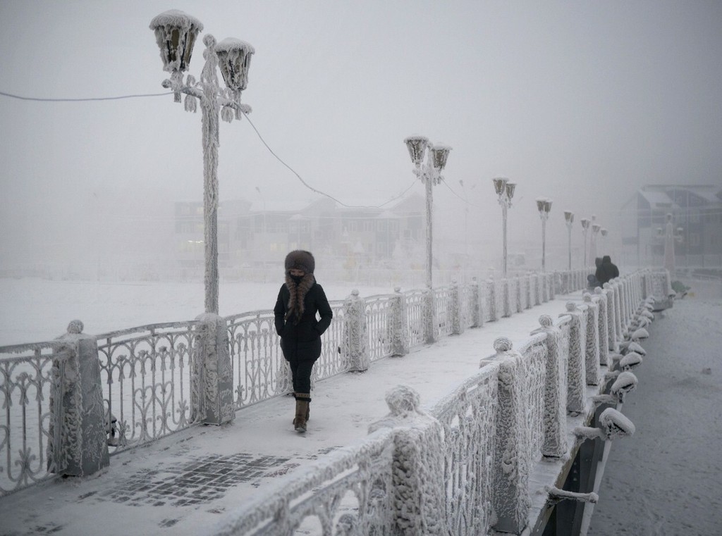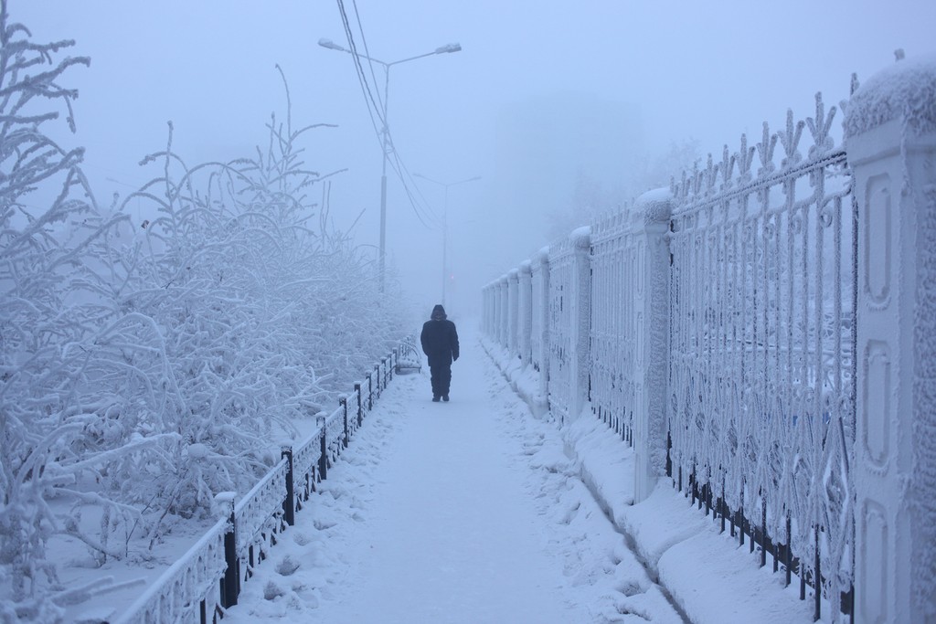 Jakutsk sa nachádza vo východnej Sibíri a je označovaný ako najchladnejšie mesto na Zemi. V januári tam priemerná teplota dosahuje -40°C, ale často sa stáva, že ortuť teplomera klesne aj na -57°C. Rekordom je -64,4°C a zaznamenali ho ešte v roku 1989.