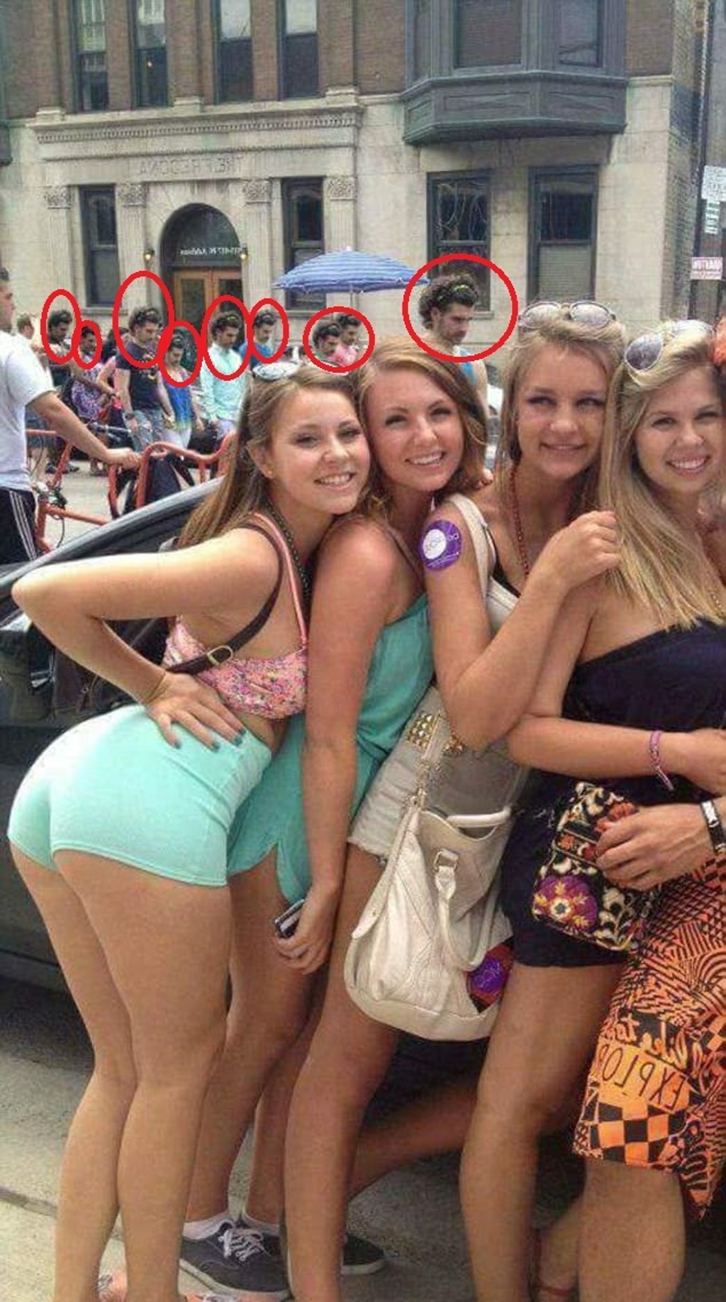 V pozadí dievčat sa totiž prechádzajú deviati muži, ktorí majú rovnakú hlavu. Fotka je evidentne výsledkom práce vo photoshope. Fotku si pozreli desaťtisíce užívateľov internetu. Niektorí sa vyhovárajú, že ich rozptyľovala dievčina, ktorá do objektívu vytŕča pozadie, píše portál MailOnline.