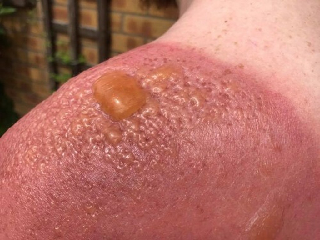 Na ramenách sa mu začali tvoriť hrozivé pľuzgiere. Najhoršie mal spálený krk a ramená.