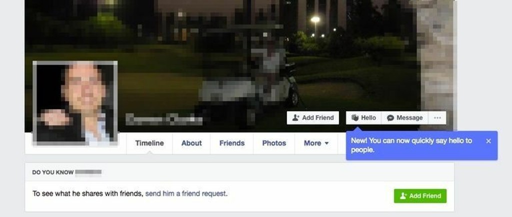 Tlačidlo sa zobrazuje v hornej časti profilu hneď vedľa tlačidla na odoslanie žiadosti o priateľstvo alebo odstránenie priateľa. Preto sa ľahko môže stať, že keď si budete chcieť niekoho odstrániť z priateľov a kliknete na Hello, tak ho na seba upozorníte a tým pádom aj na svoj zámer, keď sa už vo vašich priateľoch nenájde. Alebo si to radšej rozmyslite a budete tohto človeka na Facebooku stále trpieť.
