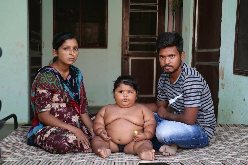 Chahat Kumar z Indie má 16 mesiacov, no váži viac ako 6-ročné dieťa. Trpí vzácnou genetickou poruchou, ktorá spôsobuje nedostatok hormónu leptínu v tele. To je dôvod jej neustáleho pocitu hladu.