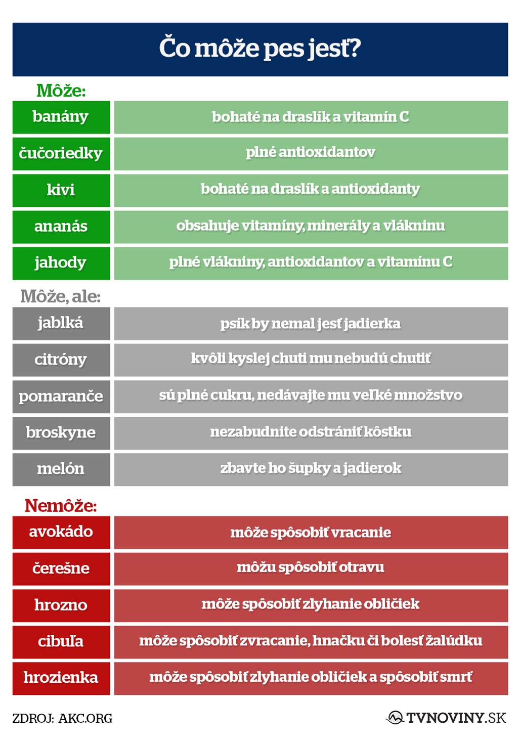 Združenie Amerických chovateľských staníc zverejnilo na svojej oficiálnej stránke zoznam druhov zeleniny a ovocia, ktoré psy možu jesť a ktorým sa naopak majú vyhýbať.