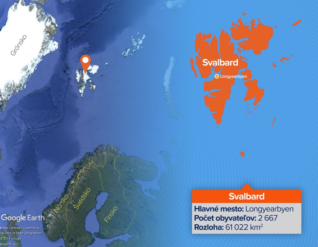 Ostrovy, ktoré ležia za severným polárnym kruhom. Sú pod správou Nórska, ale každý tretí obyvateľ je Rus. Právo ťažiť nerastné suroviny a loviť ryby môže na nich približne 50 štátov, medzi nimi aj Slovensko. Pred pár rokmi tu vybudovali akúsi „Noemovu archu", teda miesto, ktoré má uchrániť život v prípade globálnej katastrofy.
