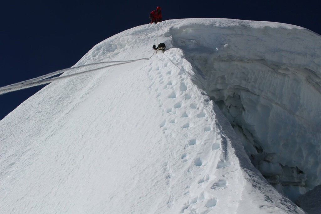 Horolezci bez väčších problémov vystúpili na prvý vrch a keď zostupovali dole, všimli si, že ich prenasleduje pes. Veľmi ich to prekvapilo, práve sa totiž nachádzali vo výške 5800 m.n.m. Ako sa tam ten pes dostal? Hlavami krútili aj skúsení šerpovia.