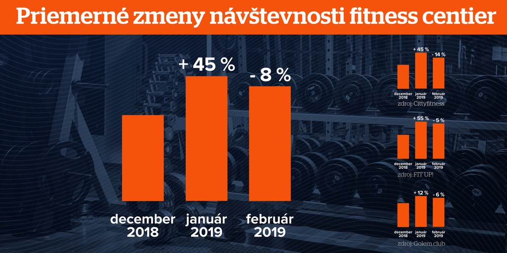 „Február je zvláštny mesiac, pretože sú tam nejaké prázdniny a voľná. Ak by sme odčítali tieto dni a brali odpracované dni, tak markantný pokles nevidíme," vyjadril sa marketingový manažér siete posilňovní Vladan Fejlek.